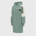 Crafted from a comfortable blend of organic cotton and recycled polyester, the MARLEE HOODIE DRESS works just as well over leggings as jeans. This hummel® long sweatshirt is made in a color-block silhouette with long sleeves and ribbed cuffs. It’s complete with a logo badge on the chest.